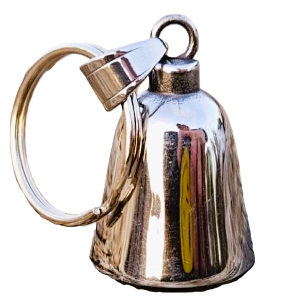 Bells comes with a 24mm nickel platted split ring and a 7cm x 9cm velveteen drawstring black bag & the legend of the Bell in script.