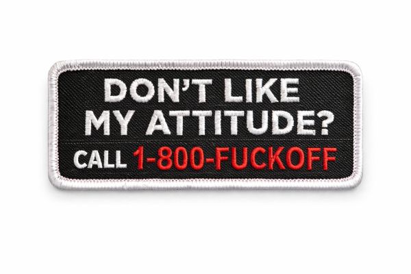 Don’t Like My Attitude 10cm x 5cm Quality Embroidered Patch with Heat Seal Backing.