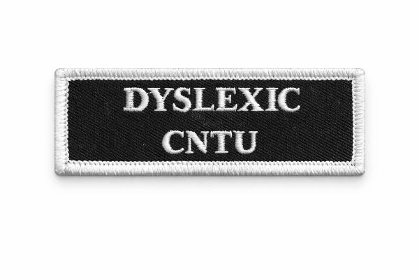 DYSLEXIC CNTU 8cm x 2.25cm Quality Embroidered Patch with Heat Seal Backing.