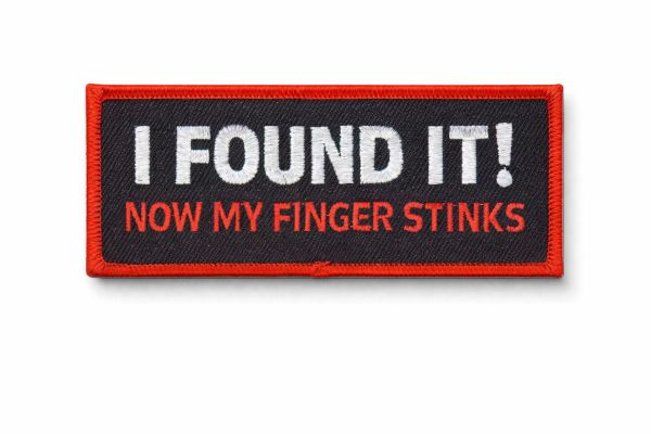 I Found It! Now My finger Stinks 9 x 4cm Quality Embroidered Patch with Heat Seal Backing.