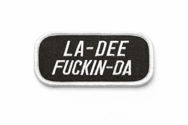 LA-DEE FUCKIN DA 10 x 5cm Quality Embroidered Patch with Heat Seal Backing.