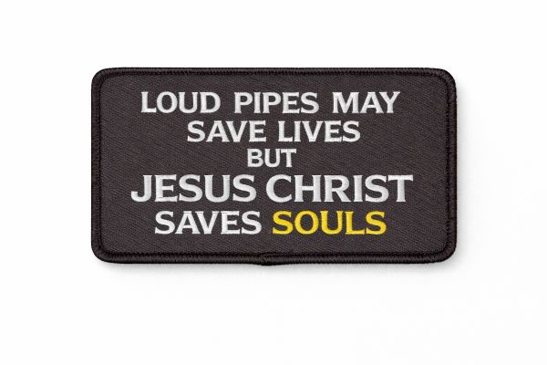 Loud Pipes May Save Lives But Jesus Christ Saves Souls 9 x 7.5cm