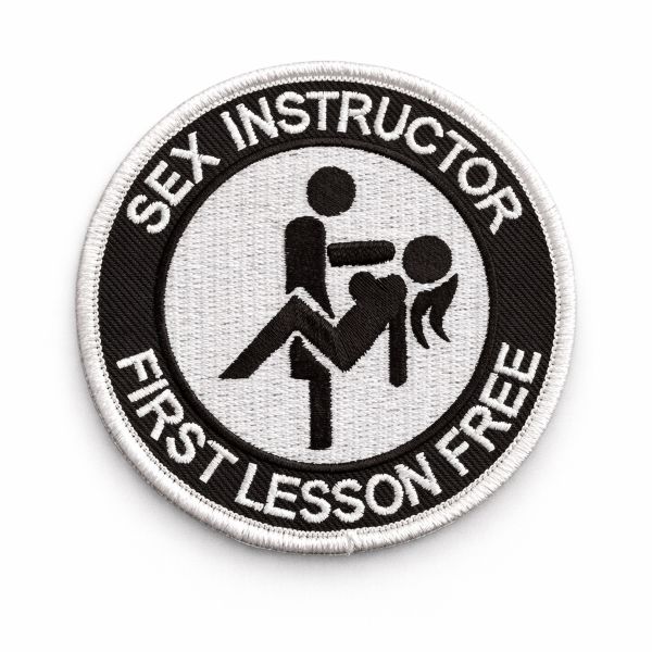Sex Instructor 7.5cm Quality Embroidered Patch with Heat Seal Backing.